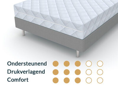 - 120x200 cm matras Koudschuim HR55: De combinatie van ondersteuning en lichte drukverdeling maakt dit type geschikt voor zowel rug- als zijslapers die optimaal comfort zoekt.